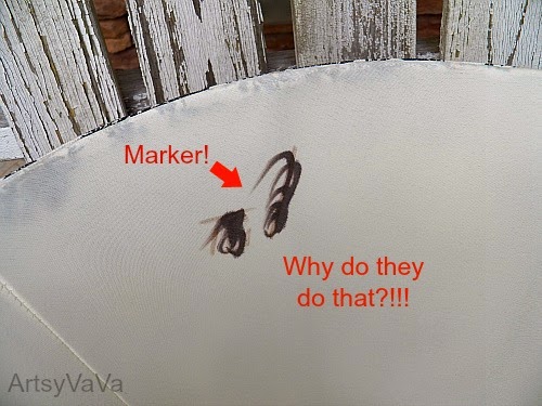 The Goodwill has a BAD habit of writing on their items with either a wax pencil or marker. For some things it's okay and the marks will come off easily. Not the case for this lampshade!!!