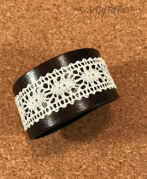 Recycling an old leather belt, in combination with lace ribbon, into a cuff